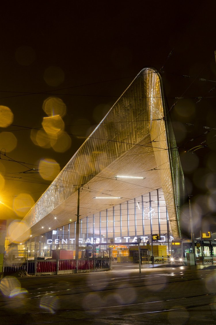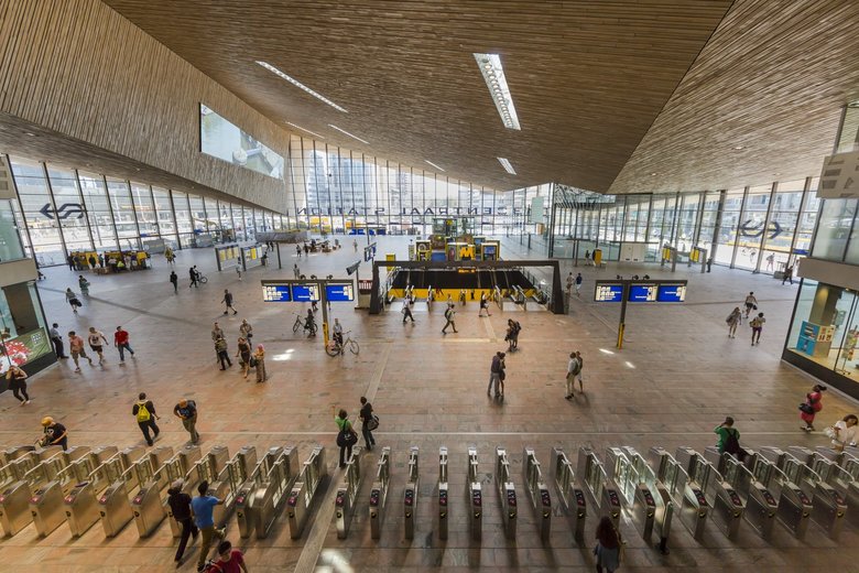 Der neue Rotterdam Centraal Bahnhof ist ein attraktives, helles und freundliches Verkehrsterminal, das gleichzeitig als Begegnungszone fungiert. Eingebunden in das städtische Gewebe verbindet der Bahnhof die verschiedenen Charakteristika der Stadt miteinander und bildet den Startpunkt der kulturellen Achse. Das moderne und effizient gestaltete Gebäude bietet alle erdenklichen Annehmlichkeiten und Komfort für die heutigen und zukünftigen Fahrgäste von und zur Hafenstadt.