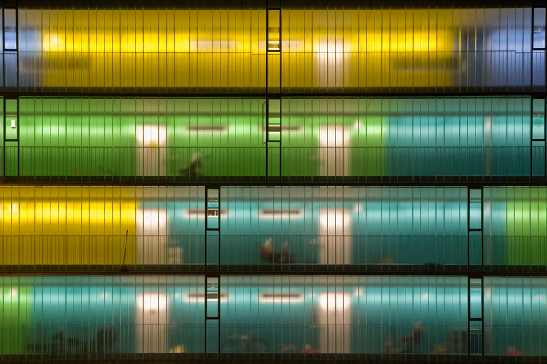 Der soziale Wohnkomplex der GEWOFAG ist ein Paradebeispiel dafür, dass eine eindrucksvolle Nachtansicht nicht primär eine aufwändige Effektbeleuchtung erfordert, sondern bei intelligentem Umgang mit Licht, durch sehr einfache Mittel erzeugt werden kann. Um die Gebäudefassade in Szene zu setzen wurde die rückwärtige Wand der Laubengänge farbig gestaltet und lediglich mit Reflektor-Lichtleisten, die gleichzeitig als Allgemeinbeleuchtung dienen, beleuchtet. So wurde bei dem Low-Budget-Projekt ohne aufwendige LED-Technik eine hochwertige und effektvolle Beleuchtung erzielt, die auch auf dem heutigen Stand der Technik nicht günstiger und wirtschaftlicher umzusetzen ist.