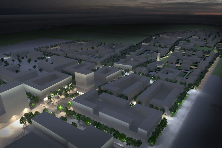 Lichtmasterplan | Aufbauend auf einem unbespielten Stadtbild wird hier ein Masterpan für die Beleuchtung des Stadtteils Freiham Nord dargestellt, mit dem Ziel alle Aspekte einer ganzheitlichen Lichtplanung zu vereinen. Die Beleuchtung dient der Verkehrssicherheit und beeinflusst das Wohl- und Sicherheitsempfinden. Sie prägt die Wahrnehmung von Stadträumen und –flächen und soll das abendliche und nächtliche Stadtbild positiv formen. Hierzu gehört die Erfahrbarkeit von städtebaulichen Strukturen, die Orientierung durch das intuitive Erkennen von Wegeführungen und –hierarchien, sowie die Aufenthaltsqualität auf Plätzen und in Parks. Besondere und einprägsame Bestandteile der Stadt, wie Plätze, Knotenpunkte, Freiflächen und Wege gilt es, unterstützt durch die Beleuchtung, zu gestalten.