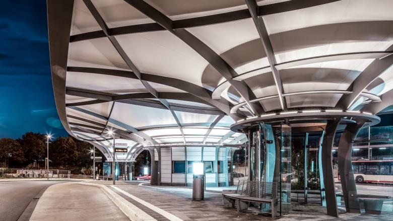 Im Fokus der Kunstlichtplanung stand der Lichtkomfort: Verkehrssicherheit und blendungsarmes Licht für die Busfahrer und wenig Störungen der Fahrgäste durch Blendung und gute Lesbarkeit der DFI-Anzeigen.