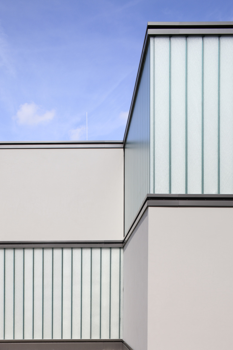 Der Neubau greift die offene Bauweise auf dem Campus auf. Farben und Materialien orientieren sich an den vorhandenen, teilweise historischen Bauten. Über einen geschlossenen Verbindungsgang ist der benachbarte Altbau zu erreichen, in dem die eigentlichen Experimente durchgeführt werden. Hier befinden sich die sanierten Labore mit Mess- und Auswerteplätzen sowie Büroräume.