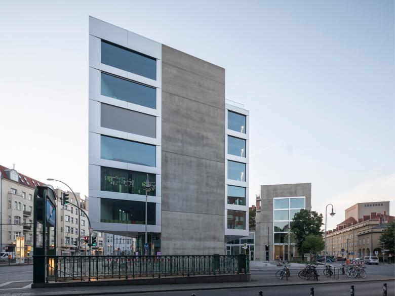 Das neue Verlagsgebäude des Suhrkamp Verlags am Rosa-Luxemburg-Platz in Berlin-Mitte nach Plänen von Bundschuh Architekten ist Teil eines städtebaulichen Ensembles aus drei Gebäuden [Bürogebäude I, Bürogebäude II, Wohngebäude], die sich um einen öffentlichen Platz gruppieren.