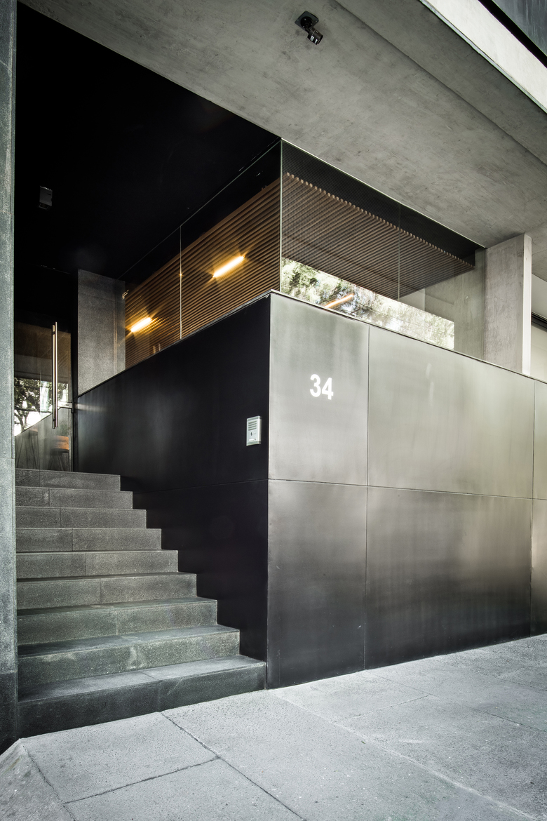 ocalizado en los límites de la Colonia San José Insurgentes, Capuchinas 34 es un proyecto de carácter habitacional de 6 niveles, en el que el edificio se resuelve en un volumen rectangular asimétrico de altura moderada que distribuye 4 departamentos, 1 Pent-House y 2 Roof Gardens.