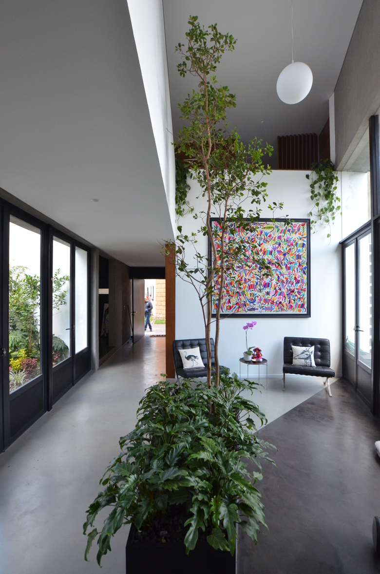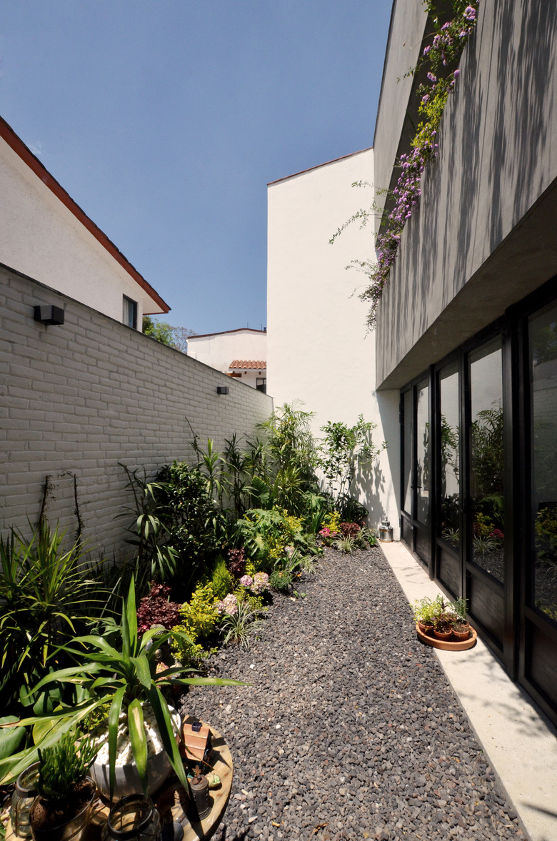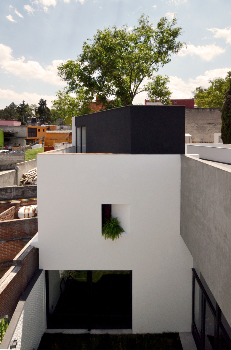 La volumetría con la que cuenta Casa Santa Ana permite la posibilidad de generar aperturas hacia los espacios exteriores, otorgando iluminación y ventilación natural hacia los espacios interiores del proyecto.