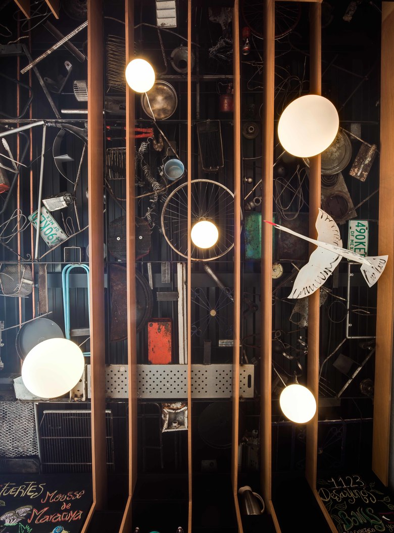 La interacción entre el usuario y los espacios exteriores nos permitió crear un espacio destinado a los comensales para que se pudiera disfrutar del proyecto tanto en interior como en exterior. La decoración adquiere demasiada importancia, ya que cuenta con materiales puramente reciclados, sobrantes de obras, con el objetivo de contrarrestar lo más posible el desperdicio de elementos que puedan interactuar como elementos completamente ambientales.