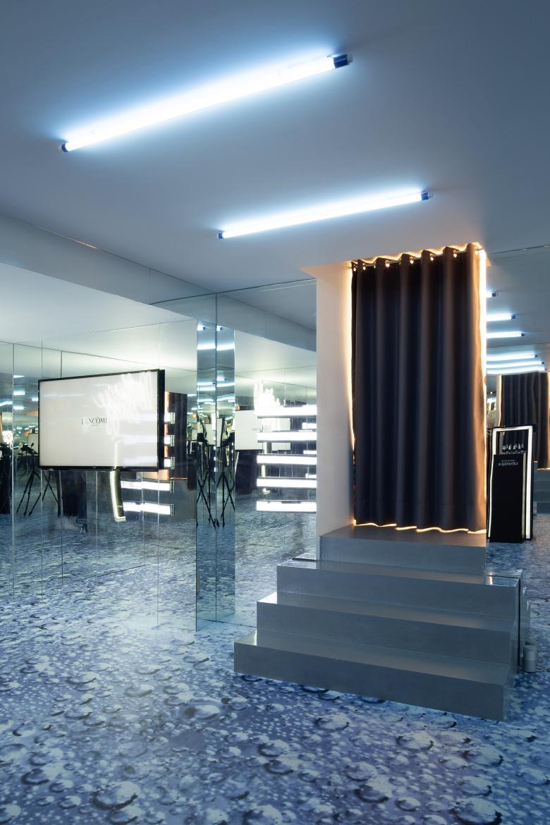 Los asistentes vivieron una experiencia totalmente inmersiva en 250 m2 desde el acceso compuesto por una “Ô” de flores hasta el interior dividido en Skin Care, Perfumería y Make Up con la guía personalizada de consultores de belleza de Lancôme. Todas las áreas están planeadas para sorprender a los visitantes y mostrarles los productos con acciones lúdicas y diferentes estímulos multisensoriales a través del diseño del espacio. Cada habitación se desarrolló dependiendo del producto que se quería exhibir en ella, de modo que la gama de colores, sonidos, texturas y materiales, temperatura e intensidad de iluminación, incluso el aroma, es único en cada segmento del recorrido.
