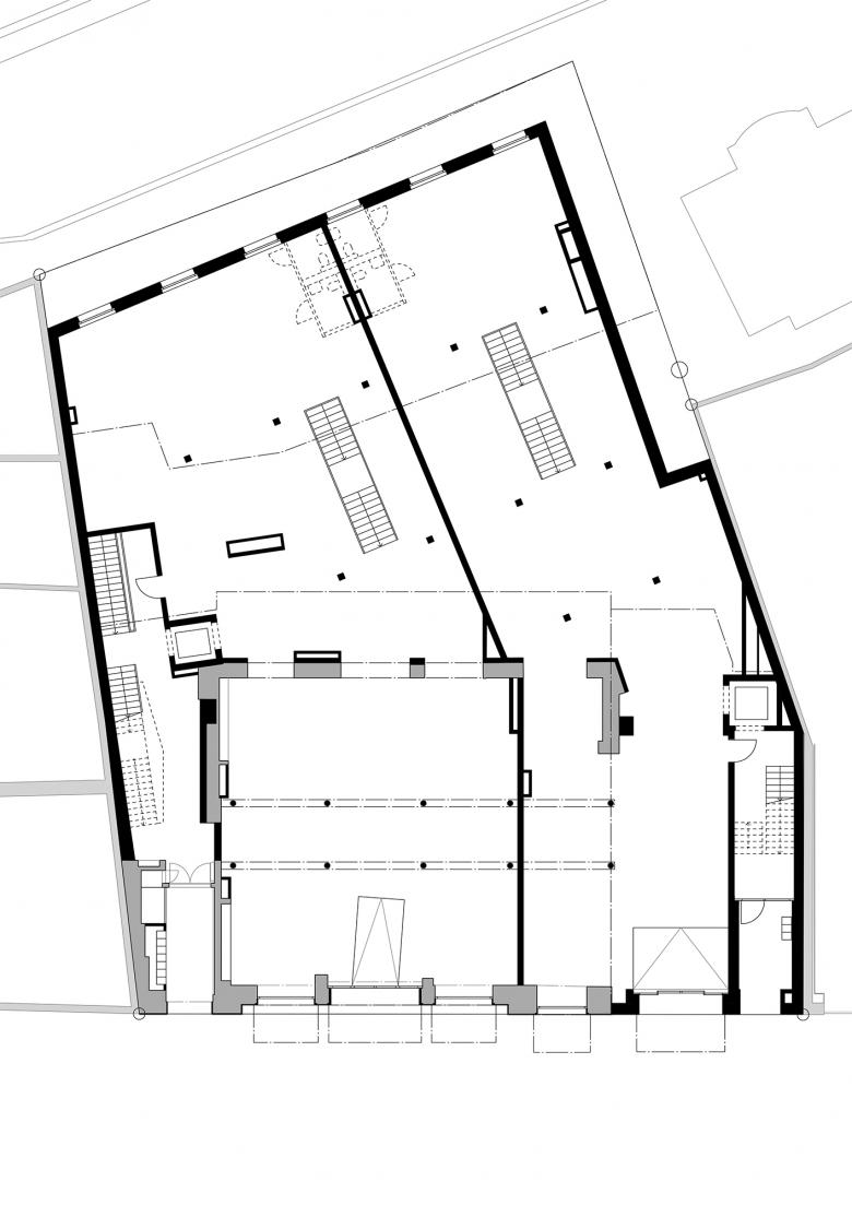 Hofseitig wird das Bestandesgebäude um eine Raumschicht erweitert, das Erdgeschoss und 1. Untergeschoss erstrecken sich mit Retailflächen variabler Unterteilungen bis zum Hinterweg.