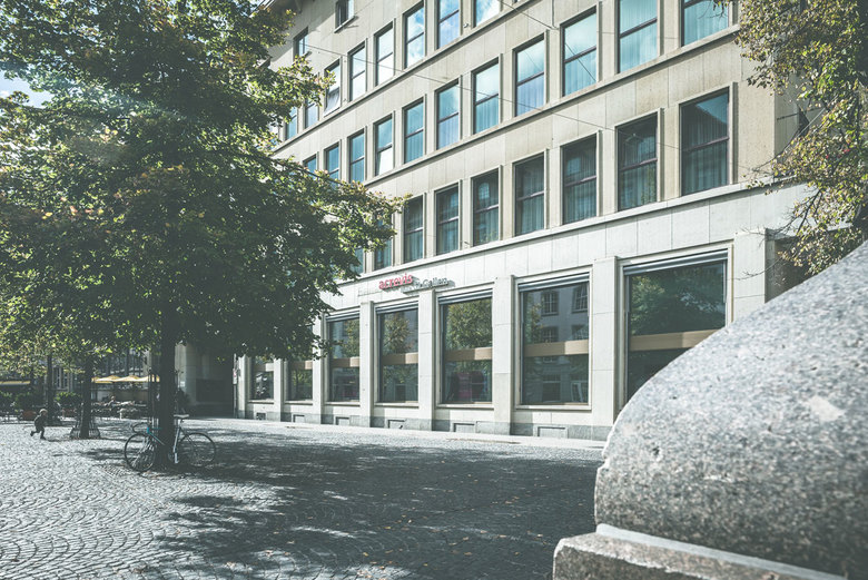 Der Hauptsitz der Regionalbank acrevis ist am zentralsten Punkt in der Innenstadt der Stadt St.Gallen zu Hause. Der Umbau der Kundenhalle ersetzt die in die Jahre gekommene und auch betrieblich veraltete Schalterhalle aus dem Jahre 1984 und repräsentiert die Bank neu durch offene, mit Tageslicht durchflutete und transparente Räume. Die Verschiebung des Haupteinganges zur Arkadenmitte und des Zwischengeschosses in den westlichen Teil des Erdgeschosses ermöglicht eine grosszügige, rollstuhlgängige Eingangssituation mit separater 24h-Zone. Die tragende Bausubstanz von 1935 bleibt dabei unangetastet. Wertige Schaltermöbel in der überhohen, hellen Halle erlauben eine schrankenlose Begegnung von Bankmitarbeitenden und Kunden. Im normalgeschossigen Bereich unter dem neuen Zwischengeschoss finden sich Wartebereich, drei Sitzungszimmer für Beratungen und das Back Office mit Diskretschalter. Im Zwischengeschoss sind die Arbeitsplätze der Kundenberater sowie WC‘s, Küche und ein Besprechungszimmer untergebracht. Kunden- und interne Bereiche im UG werden renoviert und ein IV-WC eingebaut. Die Erneuerung der gesamten Haustechnik geschieht bei laufendem Betrieb. Als Ersatz für die Kundenhalle dient während der Bauzeit ein Banken-Provisorium auf der Nordseite. Alle Büro‘s in den Obergeschossen erhalten zudem neu eine Kühlung.