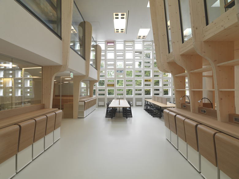 Als Grundlage für die Gestaltung der Lernumgebung diente einerseits das zweiarmige Pendel als Sinnbild für die Pädagogik der neuen Stadtschule: Struktur und Ordnung stehen dem scheinbaren Chaos gegenüber. Andererseits soll sich das Organische mit dem Architektonischen zu einer Lernumgebung verbinden, welche einen Wechsel zwischen Kommunikation und Teamarbeit auf der einen und Eigenarbeit und Vertiefung auf der anderen Seite ermöglicht.