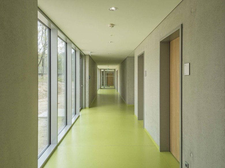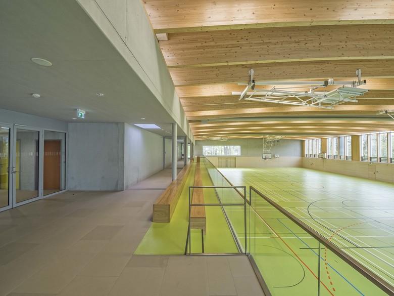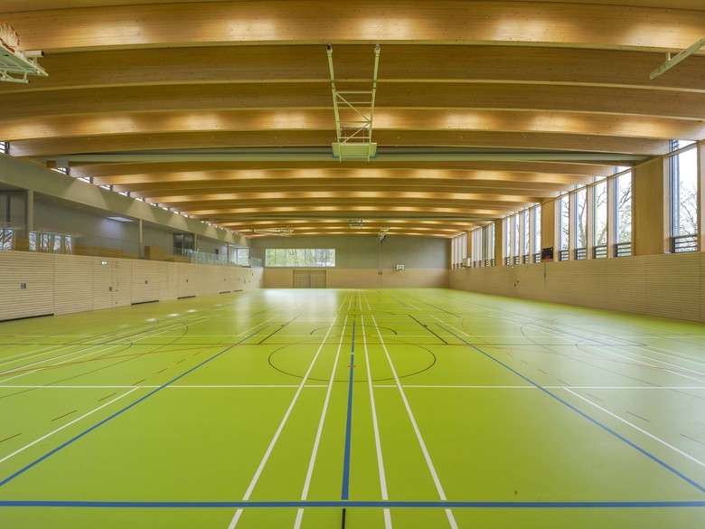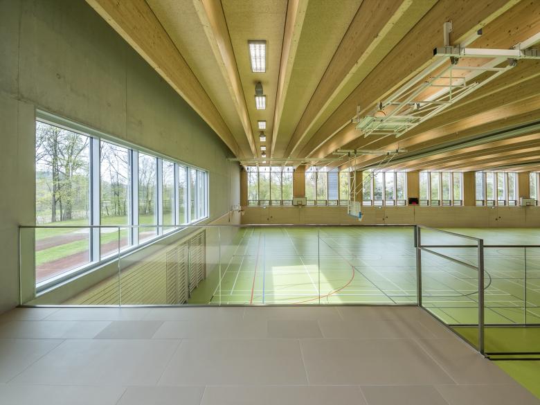 Die neue Dreifeldsporthalle am Gymnasium in Eggenfelden wird, nach Abbruch der bestehenden Mädchensporthalle wieder an das Gymnasium im Nordosten angebaut. Der Halleneingang liegt, im Bereich des bestehenden Vordaches, sodass die Sporthalle witterungsgeschützt erreicht werden kann. Das Gelände hat eine leichte Hanglage. Daher kann der Höhenunterschied zwischen dem oben gelegenem Zugang vom Pausenhof und dem tiefer gelegenen Freisportflächen ausgenutzt werden. Das Hallenniveau liegt nahezu ebenengleich mit dem westlich gelegenem Kleinspielfeld. Den Bereich der Halle prägt ein Hallentragwerk aus dichtgereihten schlanken Holzbindern. Die Sporthalle befindet sich derzeit im Bau...