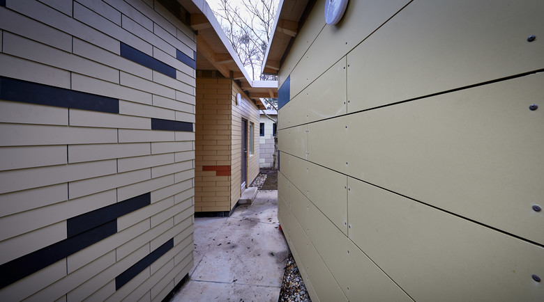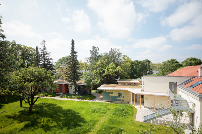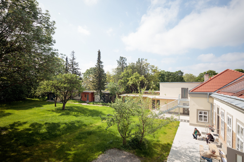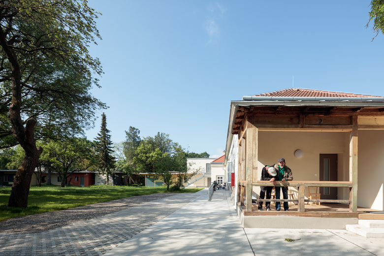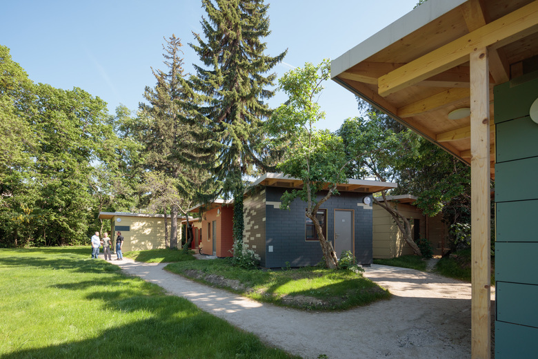 Dem Rückzugsbedürfnis der Bewohner, die oft jahrelang auf der Straße gelebt haben, zu entsprechen, wurden 16 Wohnmodule in Holzbauweise am Rand eines Obstgartens eines ehemaligen Exerzitienhauses in Hetzendorf in lockerer Aufstellung zwischen den alten Baumbestand platziert. Jedem Dorfbewohner steht ein eigenes, abschließbares Zimmer mit Sanitärzelle zur Verfügung. Wer doch mehr Anschluss an das Leben in Dorf möchte, kann das „Gasthaus“ im vollständig sanierten ehemaligen Wirtschaftsgebäude besuchen. Dort gibt es täglich warmen Mahlzeiten, frische Wäsche und ein freundliches Wort. Dort befindet sich auch die notwendige Infrastruktur wie Küche, Duschräume, Waschküche, Personalräume, die Büroräumlichkeiten der VinziWerke Wien und im ausgebauten Dachgeschoss 8 weitere Wohnplätze mit Bad.