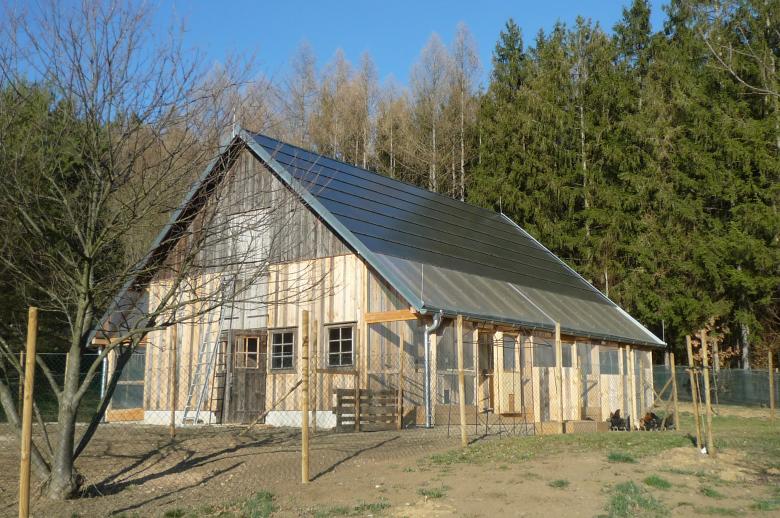 Der Hof ist als Permakultur-Landwirtschaft für Obst- & Gemüseanbau mit Kleintierhaltung entwickelt worden; der HÜHNERSTALL ermöglicht dabei die Selbstversorgung der Pflanzen mit biologischem Dünger aus dem Mist von ca. 200 Hühnern. Darüber hinaus versorgt die Photovoltaikanlage auf der Südfläche des Steildaches das angeschlossene Hauptgebäude mit Solarstrom. Dass aber auch alles innerhalb eines Sozialprojekts, das ausschließlich über Spenden finanziert wird, so umgesetzt werden konnte, ist nur dem Mitwirken und der Unterstützung vieler zu verdanken:
