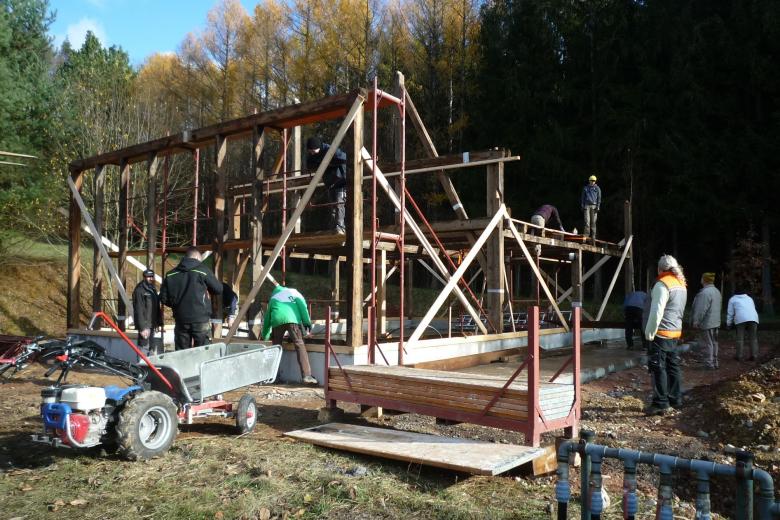So haben wir mit Holztechnik-Schüler:innen der HTL-Mödling sowie Helfer:innen aus den VinziRast-einrichtungen eine geschenkte leerstehende Feldscheune im Kamptal abgebaut, mit einem gesponserten Transport eines niederösterreichischen Baumeisters in das 80 km entfernte Mayerling gebracht und dort mit den zuvor genannten und noch viel mehr Unterstützung am ehemaligen Hotel-Tennisplatz wieder aufgebaut. Diese Geschichte wiederum veranlasste den Kärntner Solarpanel-Hersteller Kioto-Solar, die Photovoltaikmodule für das Süddach des neuen Hühnerstalls zu spenden – um nur zwei der vielen besonderen Kooperationen aus der gesamten „Stall-genese“ hervorzuheben.