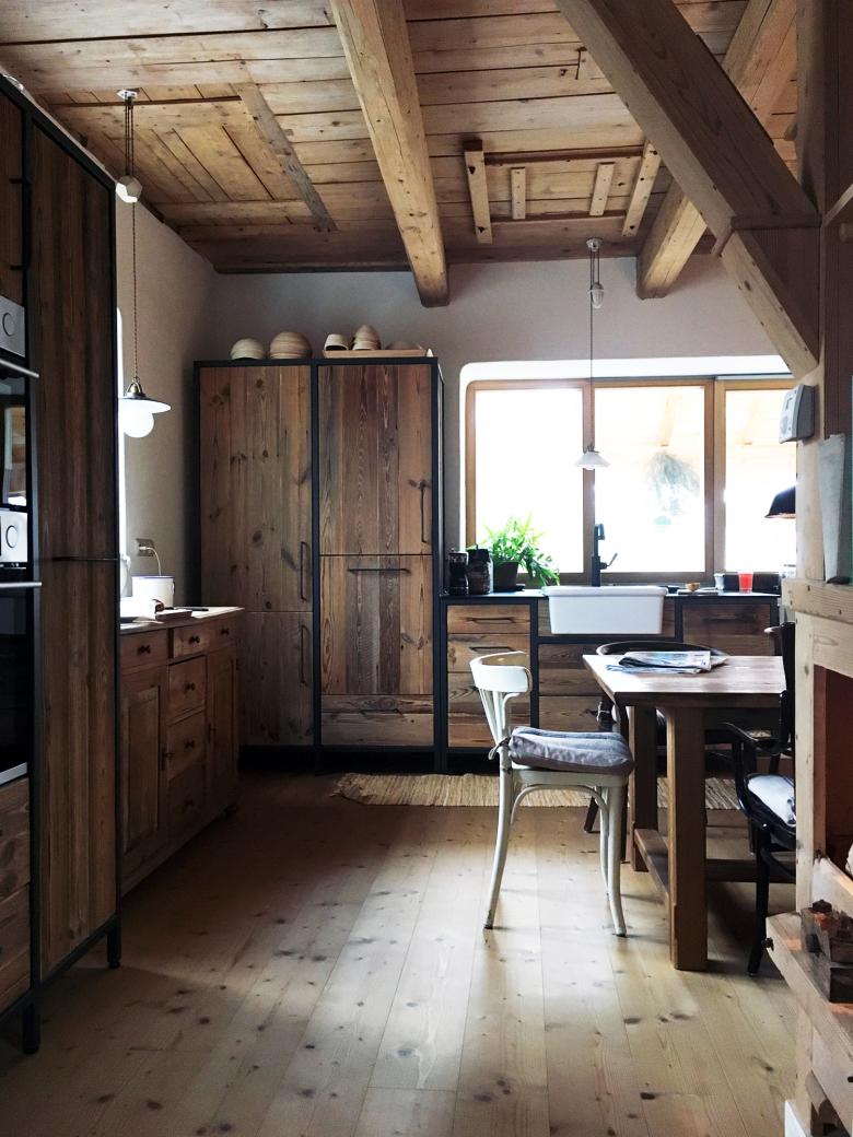 das durch den umbau anfallende altholz wurde für den bau der neuen küche, der neuen stiege oder neue türen – in alter mühlentradition oft in kombination mit schwarzstahl – wiederverwendet. in direkter nachbarschaft zu vielen ebenfalls erhaltenen elementen aus der mühlenmechanik dominiert dieses gestaltungskonzept das gebäude und trägt so den ursprünglichen charakter aus der eigenartigen vormaligen nutzung auch in die zukunft.