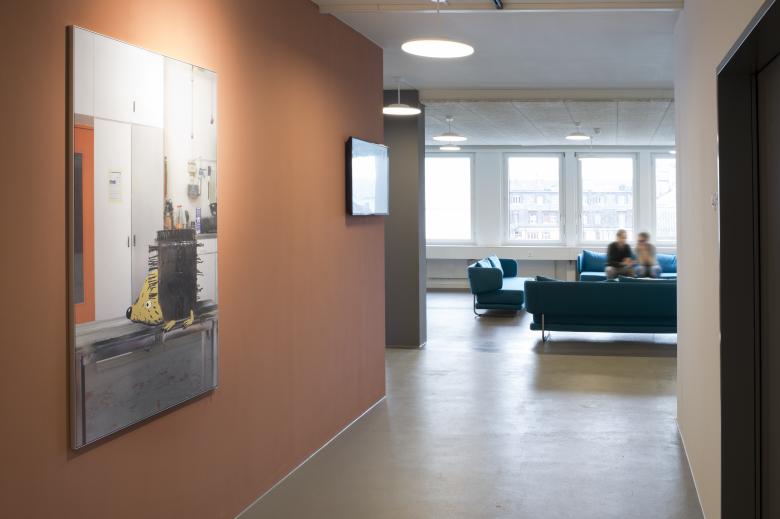 Das EWL Gebäude, in einem ehemaligen Industriequartier von Luzern gelegen, mit Sicht auf Backsteinwände, diente als Inspiration für die Farbgestaltung.