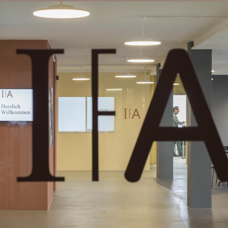 Global Shop Design präsentierte ein Farbkonzept mit mineralischen Farben, passend zum industriellen Look von roten und gelben Backsteinwänden. GSD integrierte die CI-Farben von der bestehenden Webseite, wie auch von den Drucksachen der IfA. Einen Teil der Beleuchtung sollte an die Wände gerichtet werden. An den Wänden wurden Textilspannrahmen aufgehängt, die mit den Sujets aus der Webseite bedruckt wurden.