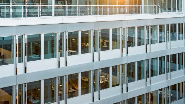The former Swiss Re office building is situated at the Badenerstrasse in central Zurich. The existing building was completed in the early ’80s and desperately needed a remodel to house the new KPMG headquarters. It is stripped down to its bare structure to be rebuilt as clearly visible volumes in its surroundings to retain its zoning privileges. The minimalist design approach emphasizes the vertical double columns and expresses the structure's true appearance to the outside. By projecting the geographic world map onto the floorplan, the building is divided into two main areas: “Generic Offices” and “Collaboration Spaces.” The minimalist design approach emphasizes the vertical double columns and expresses the structure's true appearance to the outside. By projecting the geographic world map onto the floorplan, the building is divided into two main areas: “Generic Offices” and “Collaboration Spaces”.