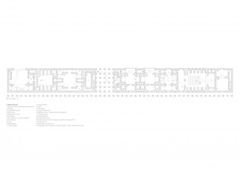 Proposal envisions a funeral complex where architecture restores the lost bond between body and territory. Light and shadow. Flowers and stones. Life and death.