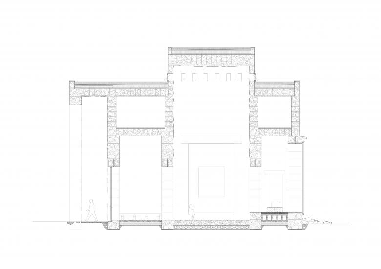 A key aspect is material reuse. The quarry contains scattered granite stones of various sizes, predominantly large ones. These are repurposed into massive blocks that act as architectural elements, working through compression. Large excavated cavities serve as lost formwork for casting, later becoming fertile ground for gardens and integrating nature into the memorial space.