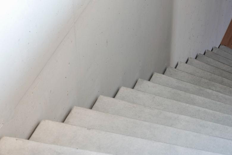 Der Wohnteil, beinahe voll verglast, auf einem Sockel aus Sichtbeton stehend, gewährt auf Grund der Hanglage uneingeschränkten Ausblick über die Dächer der Nachbargebäude. Rückwärtig holt man über ein Atrium, welches sich als tiefer Gebäudeeinzug mit abgesenktem Terrain zeigt, auch abends die Sonne bis tief in den Grundriss.