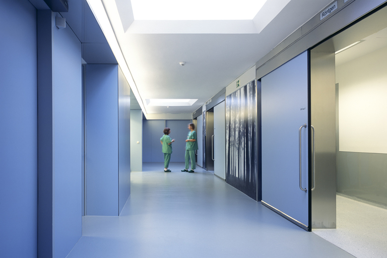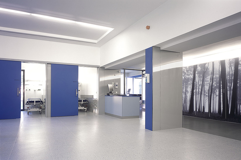 Auf dem Campus des evangelischen Waldkrankenhauses in Berlin Spandau wurde ein einfaches Bestandsgebäude aus den 70-iger Jahren in ein hochmodernes OP-Zentrum umgebaut. Damit soll den Veränderungen im Gesundheitswesen Rechnung getragen werden und der stationäre OP-Bereich entlastet werden. Der Entwurf ist darauf ausgerichtet, dem Krankenhaus auch unter sich verändernden medizinischen Rahmenbedingungen Zukunftsfähigkeit zu sichern. Das ambulante OP-Zentrum verfügt über zwei vollwertige Operationssäle und einen Eingriffsraum, der im Bedarfsfall als zusätzlicher 3. OP-Saal nachgerüstet werden kann. Durch gezielte Deckendurchbrüche entstehen in der Eingangshalle und im Vorbereitungsraum großzügige zweigeschossige Raumvolumina.