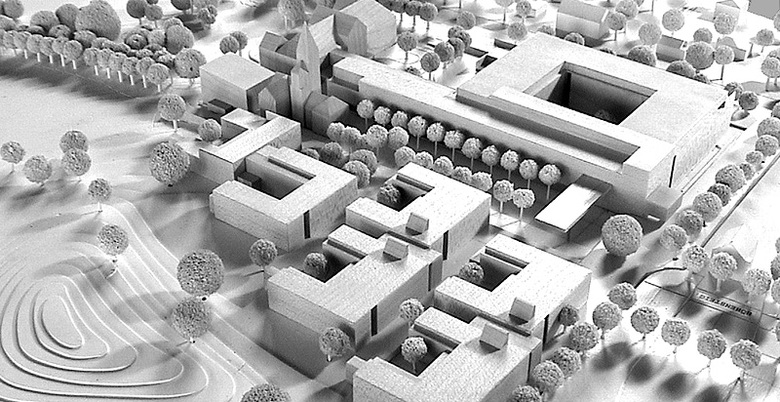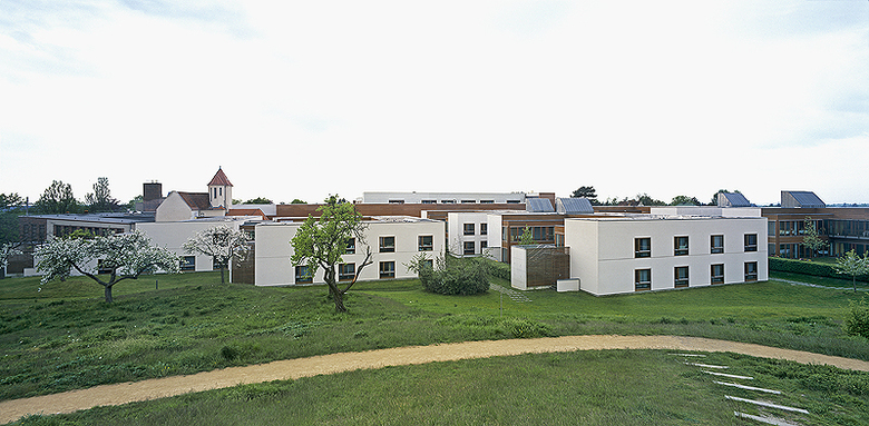 Das neue Krankenhaus Hedwigshöhe bildet im Dialog zwischen verdichtetem Stadt- und weitläufigem Landschaftsraum den Schlussstein der Gartenstadt Falkenberg am Stadtrand Berlins. Der bestehende Glockenturm markiert weithin sichtbar die neue Mitte des Gebäudeensembles, einen zentralen Platz, der wie ein typischer Dorfanger die verschiedenen Gebäudeteile zusammenfasst.