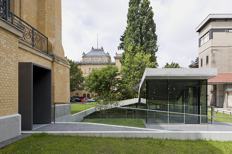 Das neue MRT-Labor ist Teil des „physikalischen Parks“ der PTB. Der MRT liegt unterirdisch im ehemaligen Quarzuhren-Keller, dem Untergeschoss des Observatoriums vorgelagert. Eine aufgefaltete begrünte Dachfläche bildet den skulpturalen Eingang; das “Abtauchen” wird ablesbar, das Laborgebäude wird so Teil dieses Parks.