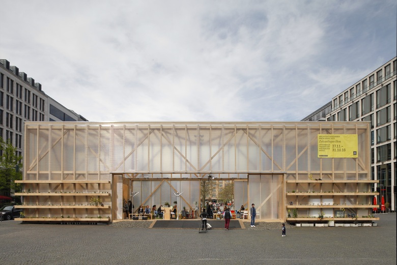 Der Architektursommer Rhein-Main (ASRM) 2015 bot eine Plattform für Ideen, wie die Region mit den Städten Offenbach, Frankfurt, Wiesbaden und Mainz zusammengestaltet werden könnte. Als einer der Vorsitzenden des ASRM 2015 hatte ich die Ehre, einen temporären Pavillon auf dem Goetheplatz in Frankfurt zu konstruieren, der als Speakers‘ Corner – ganz nach dem Vorbild im Hyde Park – genutzt werden sollte. Die aus Buchenbalken gebaute Rahmenkonstruktion wurde aus statischen Gründen mit Pflanzen beschwert. Die 16 Meter lange Toreinfahrt an beiden Längsseiten symbolisierte Offenheit und sorgte für regen Austausch.