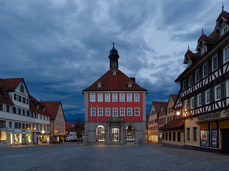 Das 1726-30 erbaute Rathaus dominiert als Solitär den Marktplatz und ist das Wahrzeichen der Stadt Schorndorf. In einer ersten Umbauphase wurden zunächst die Obergeschosse des Hauses energetisch und denkmalgerecht saniert. In der zweiten Bauphase folgten die Neugestaltung der öffentlichen Bereich im Untergeschoss sowie der Fassade. Hauptidee der Gestaltung war es, den historischen Raum möglichst sichtbar zu machen. Transparenz in allen Bereichen steht aber auch für ein bürgernahes Demokratieverständnis und erinnert an die ursprüngliche Funktion des Untergeschosses als Marktplatz.