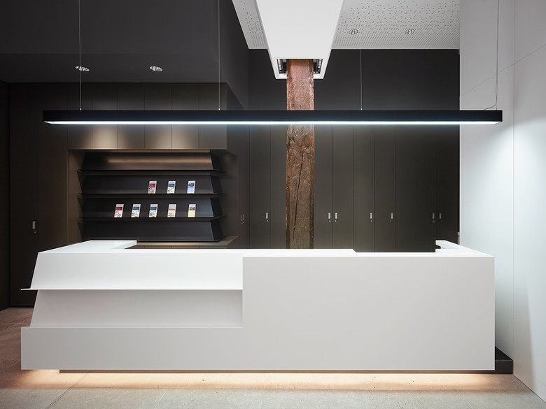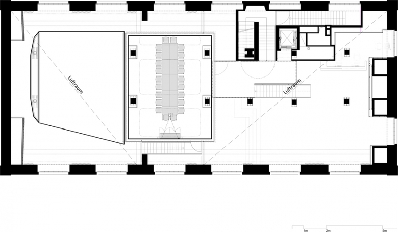 Vom Foyer mit seinen historischen Holzsäulen führt eine Treppe hinauf in den Trausaal. Dessen schwebender Einbau und die darunterliegende Front zum Plenarsaal sind aus Glas, sodass der Raum als Ganzes erfassbar bleibt. Den Plenarsaal prägen das geschwungene Deckensegel und die auf Sichtkontakt optimierte Sitzanordnung, die eine konstruktive Kommunikationsatmosphäre fördert.