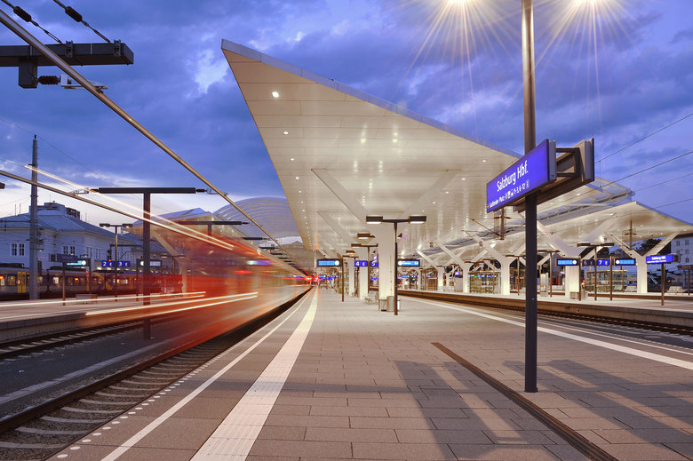 Die authentische Integration des historischen Bestandes in das neue Gesamtkonzept des Salzburger Hauptbahnhofes prägt dessen einmaligen, spannungsreichen Charakter. Die den Gleisen folgenden, geschwungenen Bahnsteigdächer schmiegen sich mit respektvollem Abstand an die behutsam sanierte, filigrane, historische Bahnsteighalle und bilden eine großzügige, geschlossene Dachfläche über den Gleisen. Dieses dynamische Raumgefüge interpretiert die Bewegung der anfahrenden bzw. abbremsenden Züge und verleiht dem Bahnhof so sein unverwechselbares Image. Über die restaurierte historische Empfangshalle erschlossen, verknüpft die Passage als landschaftlich bewegter, urbaner Raum mit großzügigen Lufträumen nicht nur die verschiedenen Ebenen und Funktionen des Bahnhofsprojekts, sondern setzt als Verbindungsglied der beiden Stadtteile diesseits und jenseits der Gleise, wesentliche urbane Impulse.