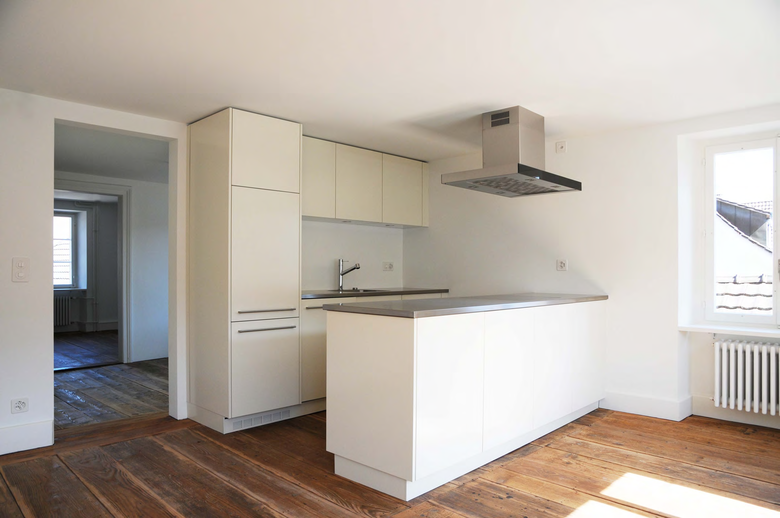 Unser Konzept sah vor, im Erdgeschoss und ersten Obergeschoss jeweils die beiden Zimmer zu einem grossen Wohnraum mit integrierter Küche umzubauen.