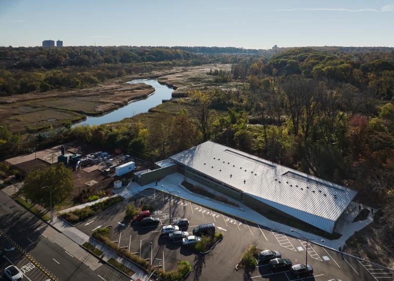 With its organic green brick wall and dramatic sloping roof, the new Alley Pond Environmental Center (APEC) offers an innovative and immersive learning experience to over 100,000 students a year and a new gateway to one of the most beautiful and expansive wetland ecosystems in New York City. Designed in collaboration with APEC educators, board, and staff, the building reflects APEC’s mission of education and environmental stewardship.