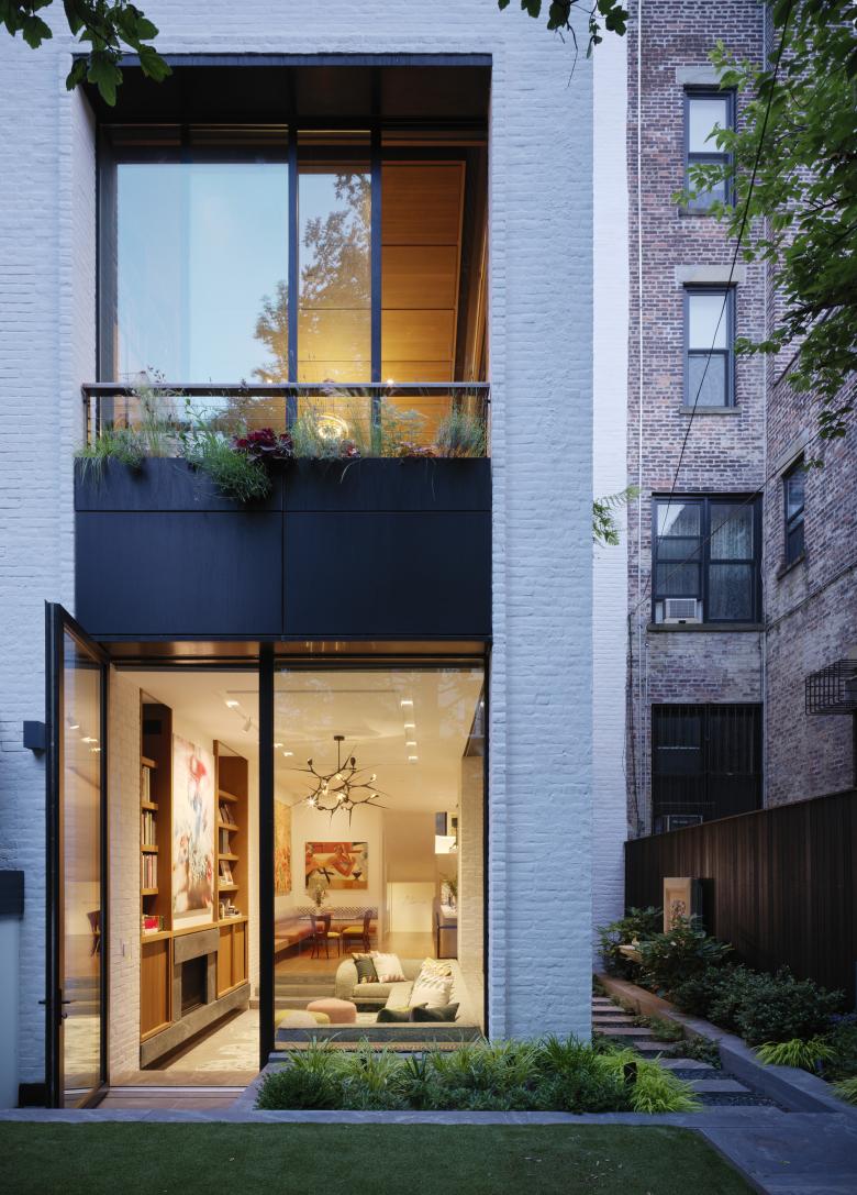 Located half a block from Prospect Park, this 1910 British Regency home underwent a complete gut renovation to create a more open and flowing plan, overcoming the narrow feel of the typical Brooklyn townhouse. The historic limestone facade with center entry, a break from the traditional brownstones in the neighborhood, was preserved.