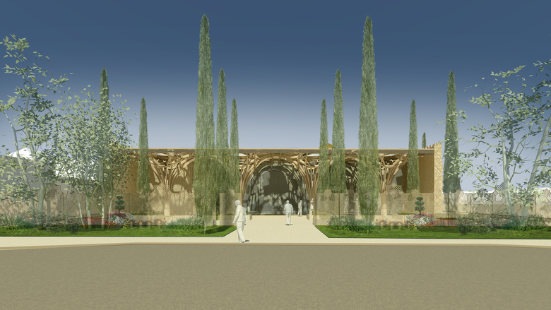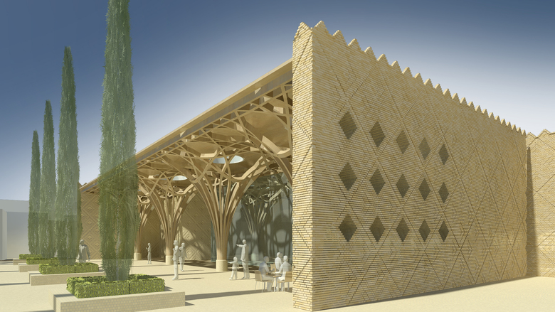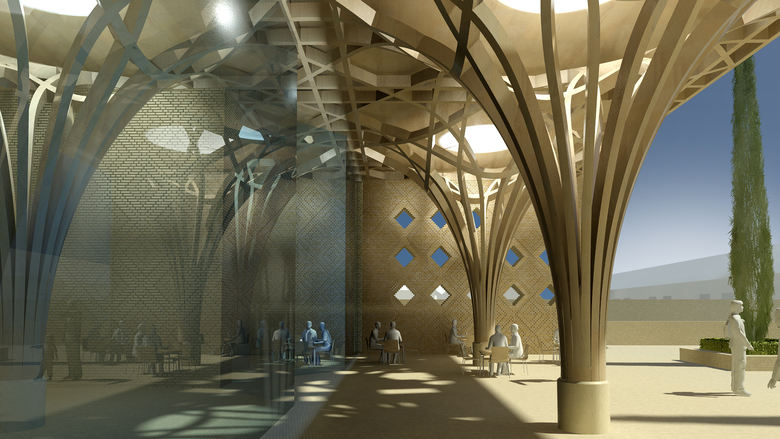 The new Mosque will accommodate a congregation of up to 1000 men and women. In addition to the Mosque’s dedicated areas (ablution, teaching, children’s area, morgue) there will be a café, teaching area and meeting rooms for use by the local Muslim and non-Muslim communities alike. The design draws its inspiration from ‘the Garden of paradise’ and water – the source of all life to create a calm ‘oasis’, with the ‘trees’ set out on a generous 7.8 x 7.8 metre grid forming the main mosque structure. The prayer hall is the heart of the building, organized around the mihrab with the principal dome above it. Between the structural ‘trees’ within the prayer hall, soft natural light filters in through circular glass domes. New cypress trees create a new permeable green edge around the building.