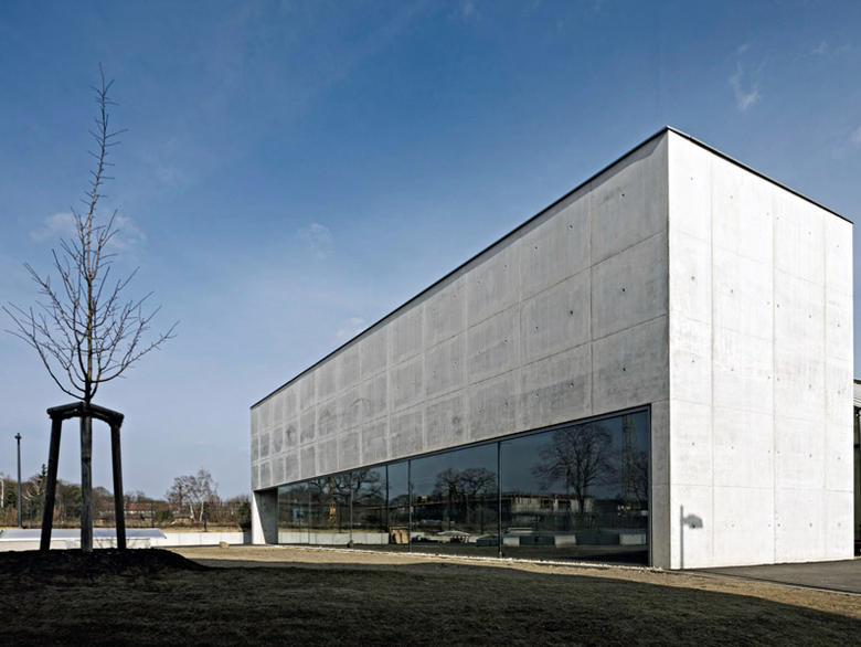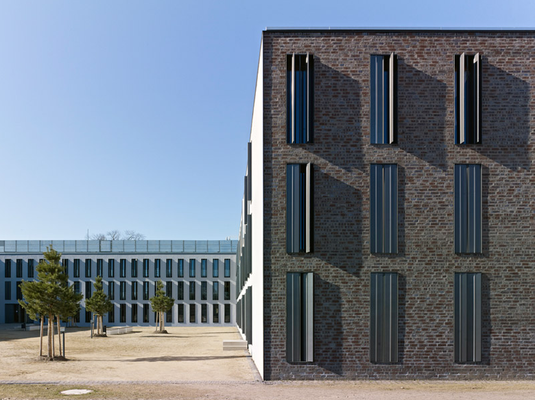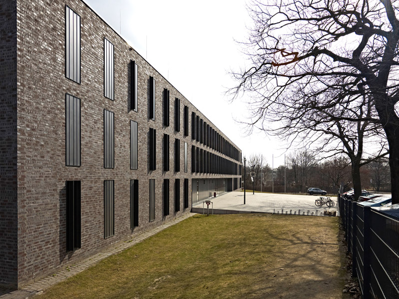 Der Neubau der offenen Vollzugsanstalt in Berlin Zehlendorf bietet Platz für 250 Häftlinge. Der Eingang orientiert sich zur Robert- von- Ostertag Strasse eine mit großen Alleebäumen gesäumten Straße. Die Gesamtanlage umfasst drei Gebäudeteile. Neben dem Unterkunftsgebäude gibt es ein Gewächshaus, das einen für die Öffentlichkeit zugänglichen Blumenshop erhalten hat und ein Garagen- und Werkstattgebäude.