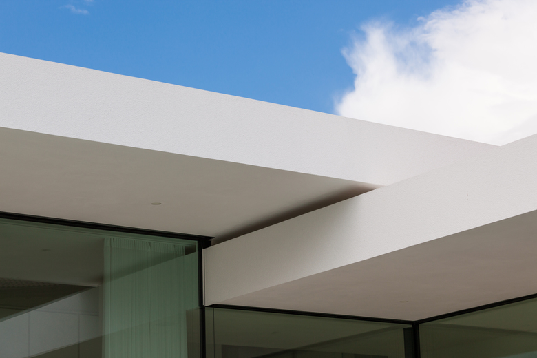 Il design della casa è puristico e questa semplicità viene sottolineata usando calcestruzzo in vista e realizzando facciate vetrate e un tetto piano coperto da ghiaia.