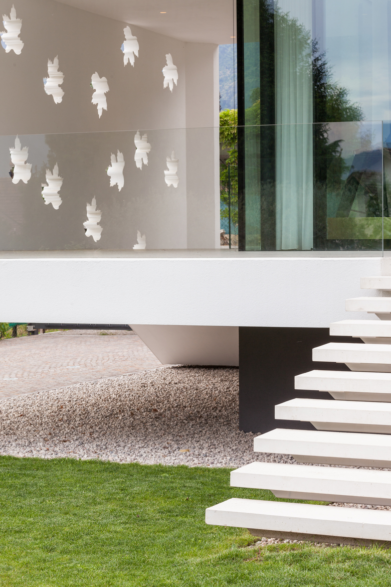 La casa T è una casa unifamiliare situata a Merano, composta da un pianterreno e un seminterrato con garage. Per adattare meglio la casa al terreno in pendenza, sono stati progettati due edifici a quote diverse uniti da gradini interni.