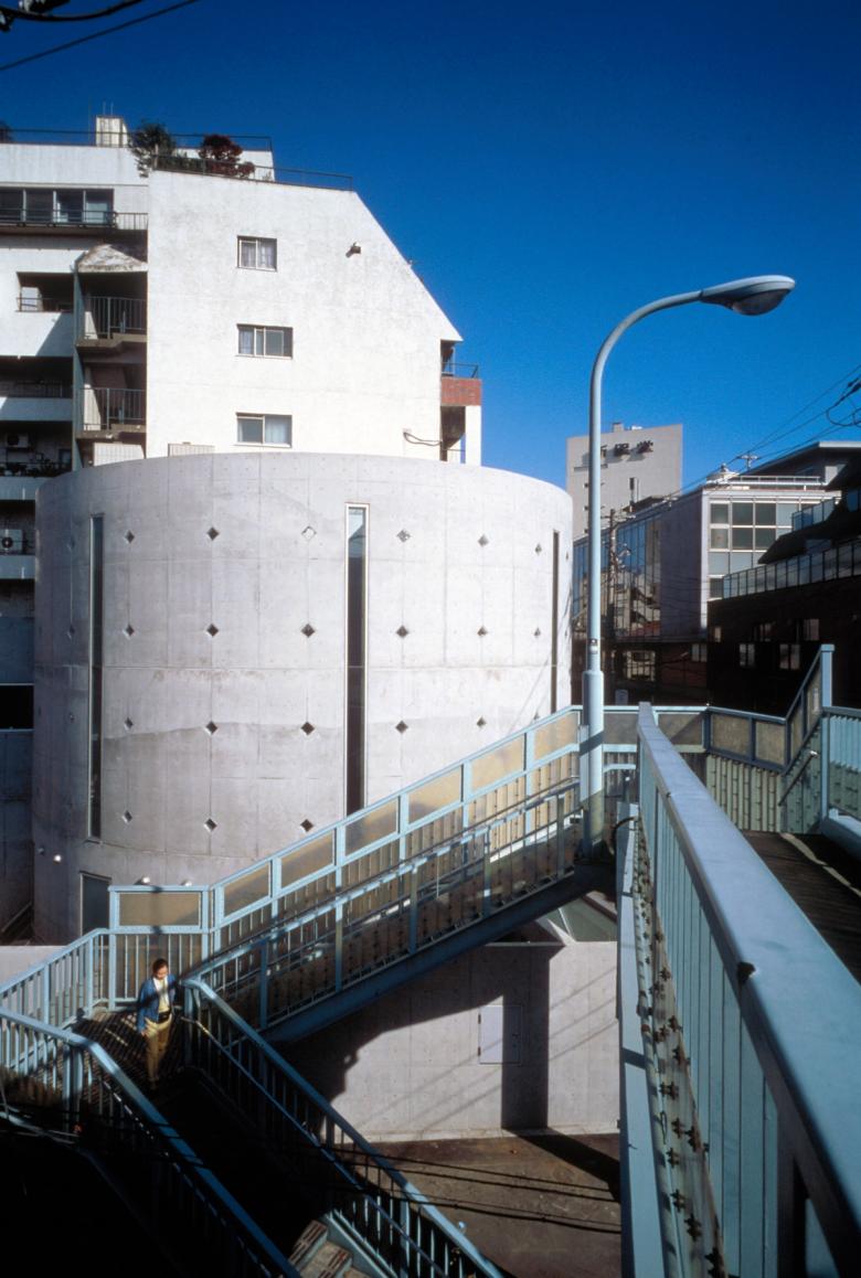 This building, which houses an obstetrics and gynaecology clinic, faces Ring Road No. 8 in Tokyo, and a footbridge spanning the road is situated close to the site.