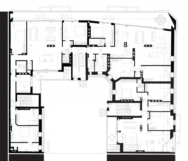 Mit dem Dachausbau des 1906 erbauten Wohn- und Geschäftshauses entstehen drei hochwertige Apartments mit 4 bis 6 Zimmern und großzügigen Wohnflächen. Jede Einheit verfügt zudem über eine eigene Dachterrasse; zwei der Apartments erhalten zusätzlich eine Aufdachterrasse mit Blick über die Stadt.
