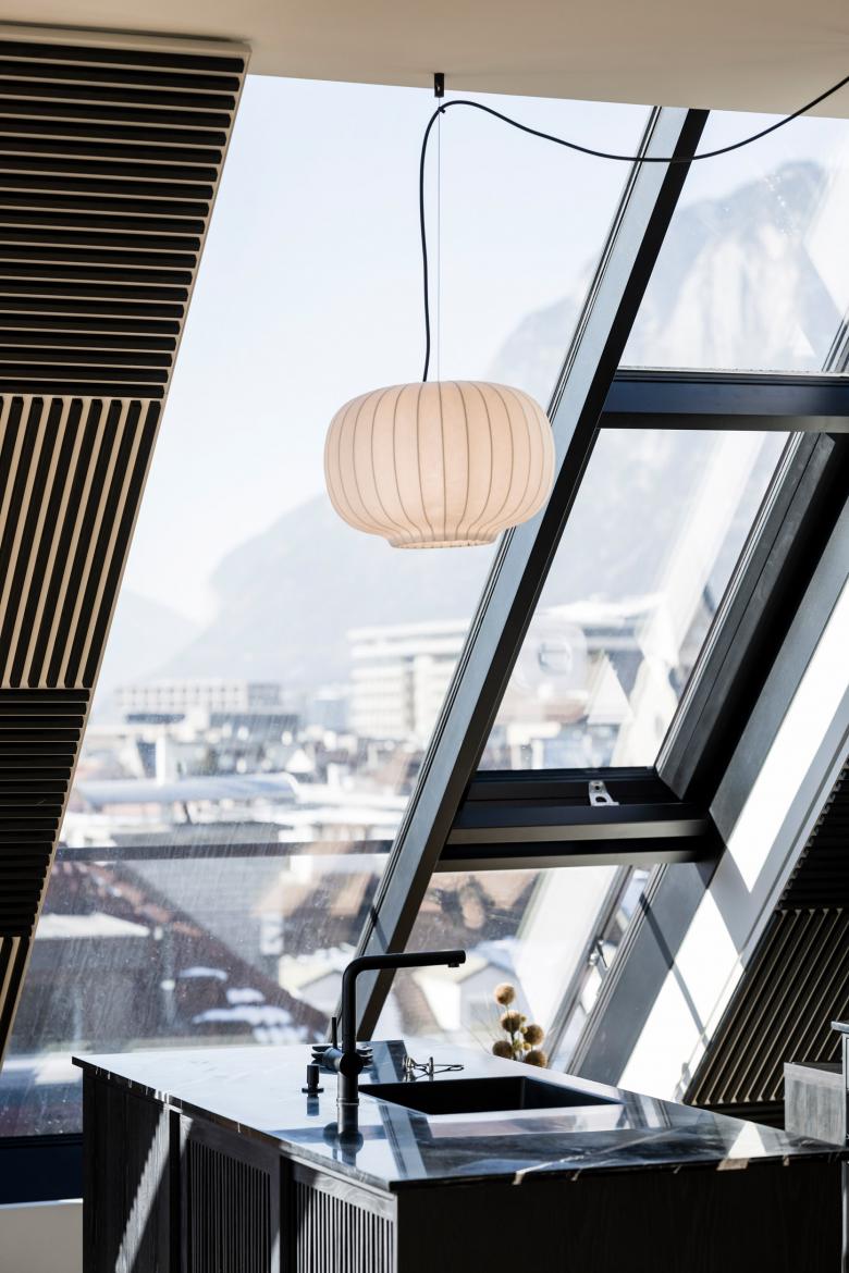 Transforming a bare attic in the centre of Innsbruck into a home ready to welcome the many stories of a traveller: this was the aim of the latest project undertaken by NOA. The architecture and interior design studio had already proven in earlier projects to be adept at combining Alpine atmospheres with distant worlds. A fortunate combination of the client's exciting history of twenty years spent in England, Singapore, New Zealand and many other countries, and a top-floor flat bathed in light, with the imposing silhouette of the Alps as a backdrop, laid the foundations for the project.