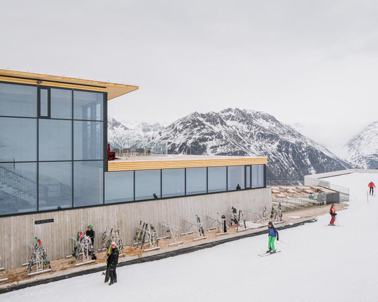 Der Neubau nimmt die Formensprache der 2010 errichteten Seilbahnstation auf, erweitert und vervollständigt das Ensemble. Aus Nachhaltigkeitsgründen wurde eine Massivholzbauweise gewählt, die Vorfertigung ermöglichte eine kurze Bauzeit. Der zeitgemäße Einsatz der Holzbaukonstruktion ermöglichte das Entstehen differenzierter Raumsequenzen und schuf eine einladende Stimmung im Innenraum.