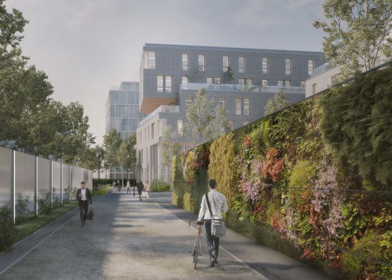 OSA designed a multifunctional, adaptive architecture with a total area of 24,000sqm. The three-story underground parking garage, with an additional 12,000sqm, reaches a ceiling height of four meters on one floor, allowing for optimal accommodation of emergency vehicles. The building is designed as timber-hybrid construction, where the floor slabs and exterior walls will be made entirely of wood. The façade will be covered with photovoltaics so that as much energy as possible can be obtained.