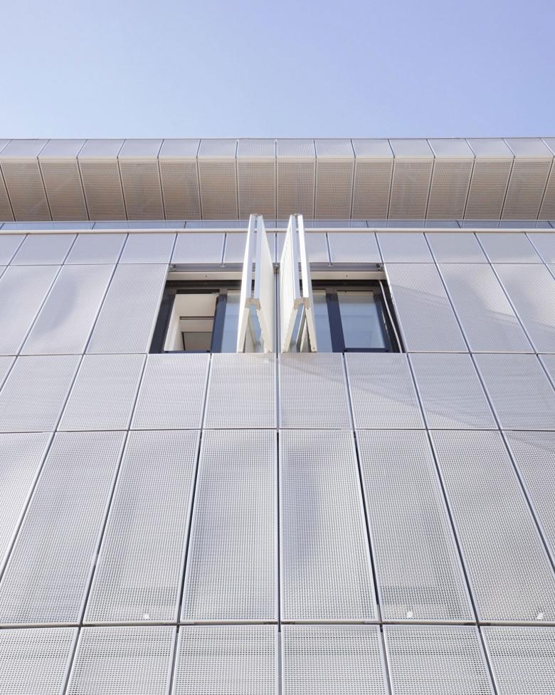 Just like the previous building from 1983, the project isbuilt on a Z-shaped ground plan with a forecourt and inner courtyard. The first floor rests on the existing two-story underground parking garage, followed by two upper floors and the final staggered floor. With our planning, we gave the Sparkasse Erding a new, contemporary layout that reflects the importance of the location within the urban fabric. The main expression of this is the facade.