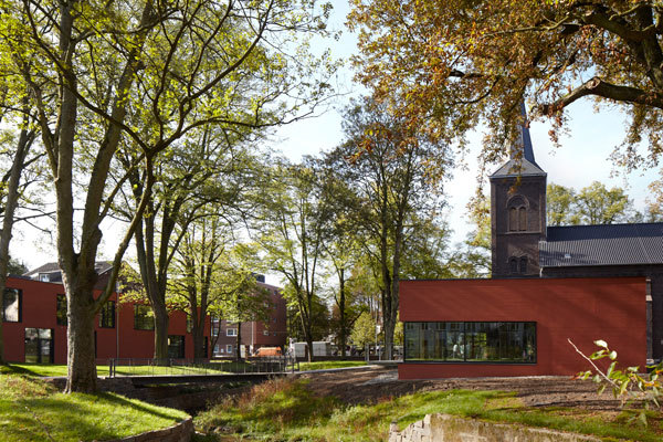Gemeinschaft bauen – Die lebendige Gemeinde braucht Raum, Nähe, freut sich über Flexibilität und Einfühlungsvermögen. Genau dafür hat sich die Evangelische Kirchengemeinde in Düsseldorf Gerresheim beim Architektur-Wettbewerb 2009 entschieden. Gewonnen hat eine gebaute Umarmung von pier7-architekten. Nach innen gelingt es durch Brücken, Wege und den renaturierten Bach, ein Gefühl von Geborgenheit zu vermitteln. Von außen wirkt die Bebauung durchlässig, einladend, eingebettet zwischen Baumkronen und Grünflächen.