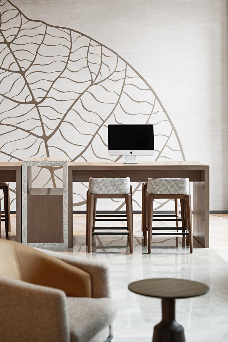 The main entrance is an open, two-storey volume with a casual information desk and check in facilities. An island service desk, has both the functions of registration and lobby bar. A tea bar and reading area at the back of the lobby, links to the ADD restaurant and becomes the lounge and social hub of the hotel.