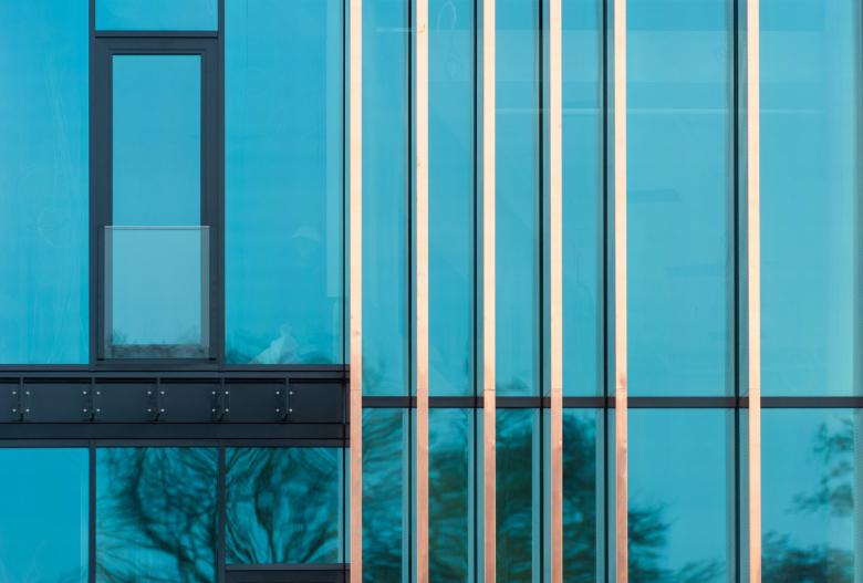 Der östliche Baustein am Schiffwasser - Die Hamburger öffentlichen Bücherhallen im Erdgeschoss, die Räume der Körberstiftung, das Bezirksamt und die gemeinsamen Flächen in den beiden Obergeschossen formen diesen Baustein. Die gemeinsamen Räume für Bewegung und die AWO sind im ruhigen südöstlichen Teil angeordnet. Dieser Baustein wird durch den südlichen Eingang an der Holzhude und durch den Haupteingang / Atrium erschlossen.