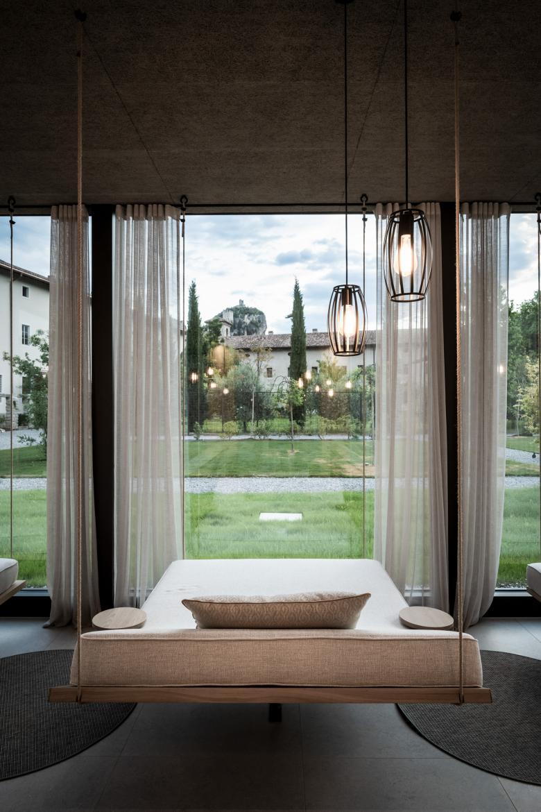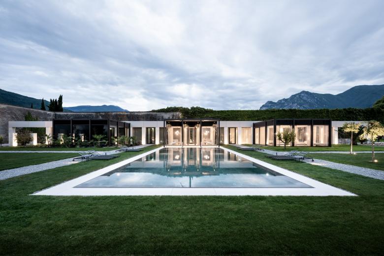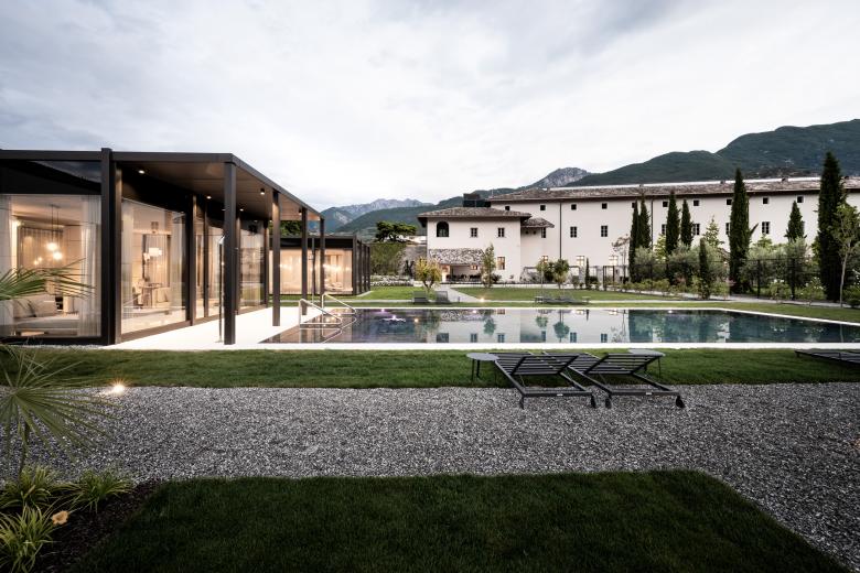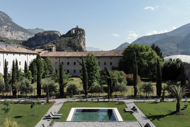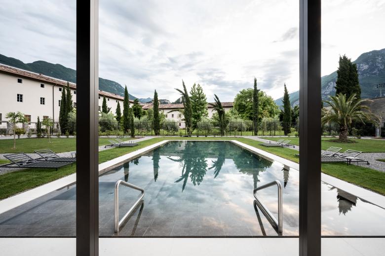 The monumental spaces of a 17th century monastery are brought back to life in Arco, Alto Garda, where noa* has transformed them into a unique hotel, while conserving the charm of the original architecture and its atmosphere of peace and meditation. In the garden, the spa is inspired by certain typical rural constructions, which can be found on the lakes shore.