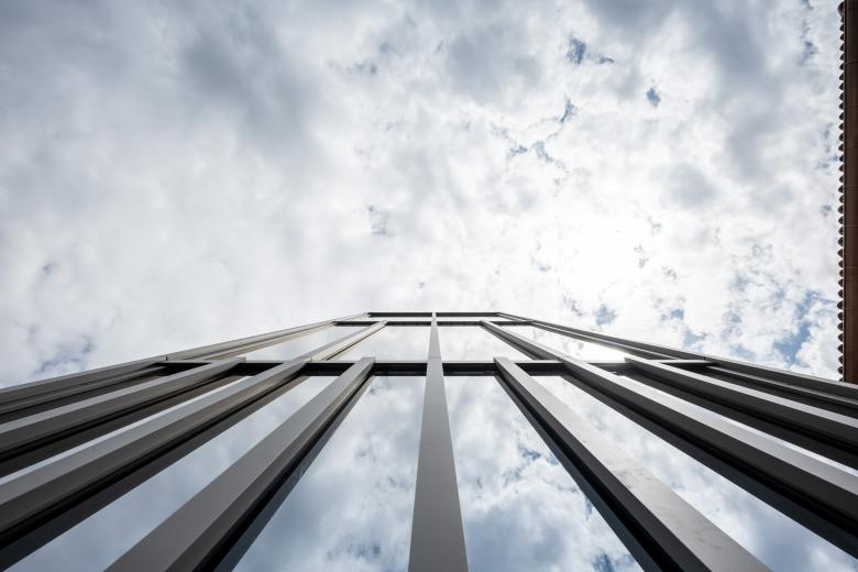 The connecting spine - composed of a series of pillars covered in Vicenza stone, whose colours recall the pre-existing structures, and a horizontal architrave in pre-fabricated and sandblasted concrete - echoes the stone pilastrade of the raised channel that runs along the eastern side of the convent.