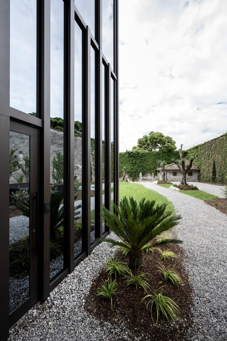 “When designing this area our aim was to create a dialogue more with the surrounding agricultural landscape than with the monastery, a little too ‘powerful’ in architectural terms”, explains architect Padovan. “To do this we used very simple elements with strong structural clarity. The light metal framework, organised in pillars and beams, is inspired by the characteristic lemon houses of rural Lake Garda”.